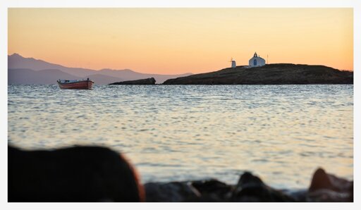 Man this is a great shot, excellent colors and nicely balanced composition. You could totally leave it as is, but if it were mine, I would crop away the entire bottom half, right where the water starts to get blurry, leaving the top half as an amazing panoramic.