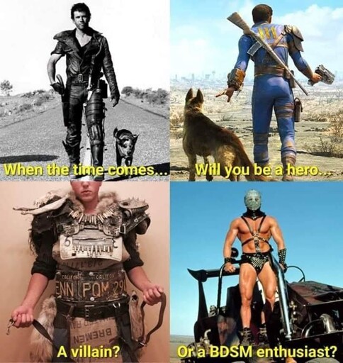 With respect to Lord Humongous, maintaining that kind of muscle-mass in the fucking apocalypse is an S-tier flex. Like, “I get access to all the best nutrition, which is in very short supply and always dwindling” kind of flex. Is it all looted, or does he eat people? Also, it takes lots of free time to spend on just working out to keep things that way. No matter how you slice it, his physique is a monument to a terrifying level of power in this scenario.
