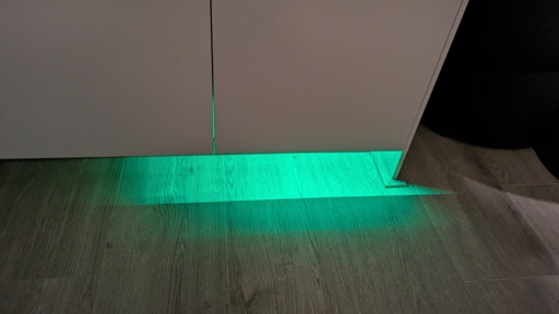 I’ve already added a LED strip below the kitchen to give some ambient and status lighting (ESP32 with WS2812B). And I also already had a power plug that measured the power (Athom smart plug V2). I’ve now also a simple door sensor (aqara zigbee). I drilled a hole in the neighbourinf cabinet and embedded some magnet, and placed the door sensor on the dishwasher door. Our dishwasher has the feature to auto open the door when it’s done to air dry it.