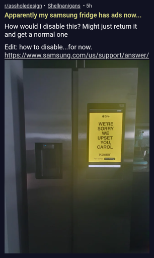 ByteOnBikes@discuss.online to A Boring Dystopia@lemmy.world · 18 days agoRefrigerator ads are finally here!discuss.onlineimagemessage-square320linkfedilinkarrow-up1829arrow-down17