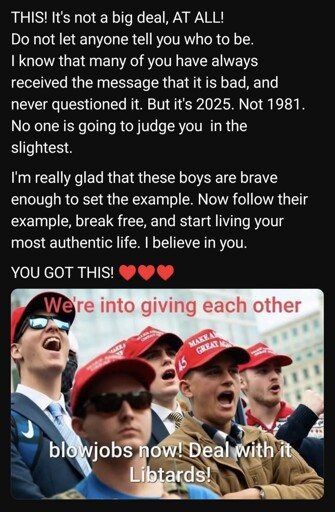 MTZ@lemmy.world to Lemmy Shitpost@lemmy.world · 2 days agoIn these deeply divided times, it's good to see someone trying to spread unity and tolerance.lemmy.worldimagemessage-square44linkfedilinkarrow-up1467arrow-down111