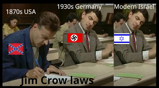 Israel’s policies take more from Nazi German occupational practices than Nazi German domestic race laws (which are what drew from the ‘Jim Crow’ laws of the US South).