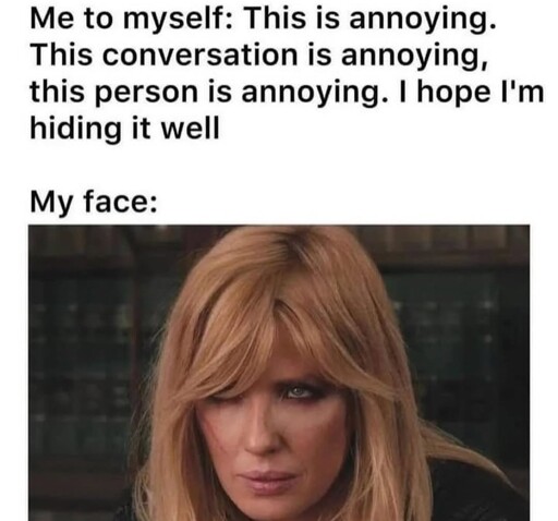 Uh, I’m sorry: That seems sufficiently specific, I just don’t understand how that works at all. I can’t recall a person snarling at me that I also classified as ‘genuinely happy’. That strikes me as an irreconcilable contradiction in terms.
