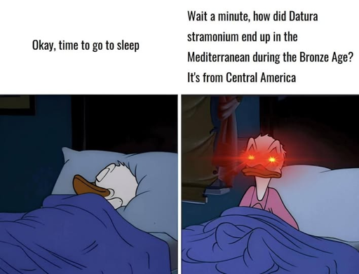 minus-squarequediuspayu@lemmy.dbzer0.comlinkfedilinkEnglisharrow-up4·5 days agoThat was what I thought until I reached this part with a link to another paper. Charred capsules of Datura stramonium were recovered in a Middle Bronze Age ritual pit at Prats, Andorra, ca. 1600 BCE