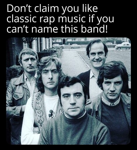 Dead Parrot. It’s the album cover for Your Mother Smells of Elderberries. Sick rhymes.