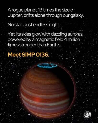So, my understanding of auroras is, the planet’s magnetic field draws particles emitted by the sun toward the poles, and as those particles interact with the atmosphere they glow. So without a star and thus without solar wind, where do the aurora come from?