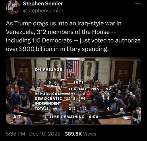 The House of Representatives is basically the Board of Directors for the American Military Industrial Complex