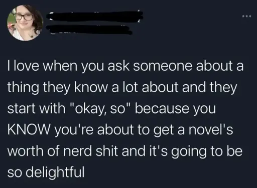 minus-squareHackworth@piefed.calinkfedilinkEnglisharrow-up11·14 days agoI went from that to asking what level of depth they want to just giving the most concise answer I can and adding, “But there’s a lot of interesting nuance I’m leaving out.” Then if they ask for more, I give my dissertation.