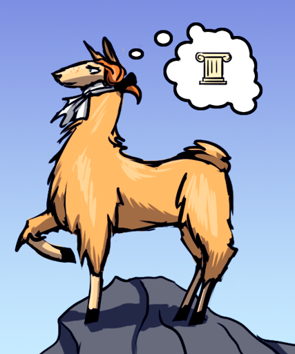 Llama + rock + thinking of a pillar typically used with philosophy.