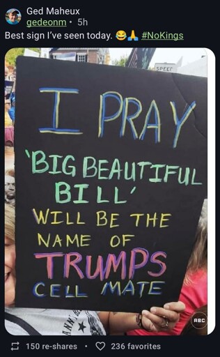 blibla@slrpnk.net to Microblog Memes@lemmy.worldEnglish · 4 days agoNo Kings Protestslrpnk.netimagemessage-square103linkfedilinkarrow-up11.12Karrow-down171file-text