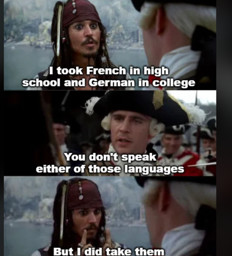 Most people who take a language in school don’t keep at it. We’re just doing it because it’s required, and to pass the class. I took French in high school. The only person I’ve ever met who spoke French fluently was my teacher. I really should have taken Spanish, but I wanted to be “different”.