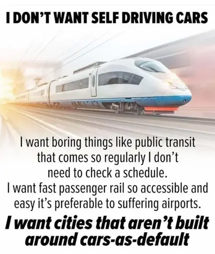 While I agree in principle with the OP, I feel I must point out that that wouldn’t completely make cars unnecessary. There are still remote or sparsely populated areas (a lot actually in my country) where comprehensive public transport is impractical or next to impossible. I’d say we have use for both. Especially so if self driving means being able to summon a car when you need one without needing to own one. Or would that actually count as public transport then…?