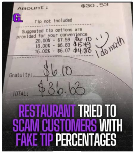 Wait so you get scammed but still give 20% tips? This would be an automatic 0% tip