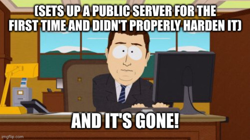 arrow-up11arrow-down1imageI didn't know you were supposed to disable root user...plus-squarelinux.communityTablaste@linux.community to linuxmemes@lemmy.worldEnglish · 1 year agomessage-square1linkfedilink