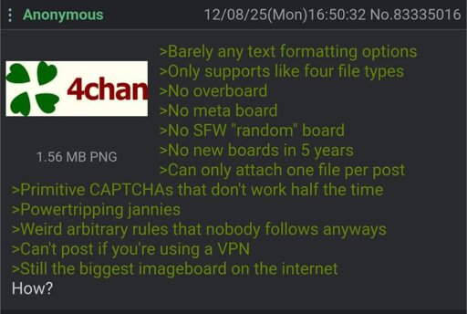arrow-up1300arrow-down1imageAnon uses 4chansh.itjust.works🍹Early to RISA 🧉@sh.itjust.worksM · 9 days agomessage-square37linkfedilink