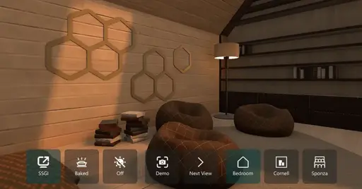 - 3D Improvements: New rendering techniques Screen Space Global Illumination (SSGI) as an option for lightmap baking, and Screen Space Reflections (SSR). Also imrovements on the Temporal Anti-aliasing algorithm with motion vectors. New user-defined render passes for post-processing effects, color picking, layer masks, etc. directly in QML.