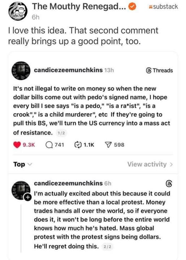 This isn’t trying to take it out of circulation tho, so that probably wouldn’t apply. They’d have to make an argument that effectively goes against the first amendment to say you can’t write on currency you plan to spend.