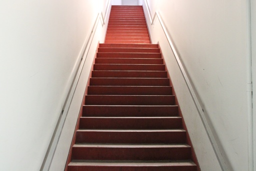 This could look rad with a square crop. That would allow you to center the stairs and clip that electrical pipe.