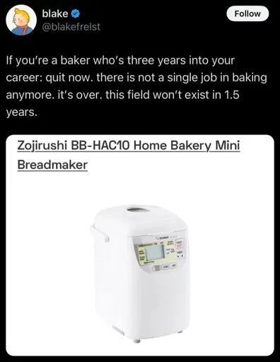 Let AI replace middle Managment and give us all UBI and see how many of us would like to make our own bread.
