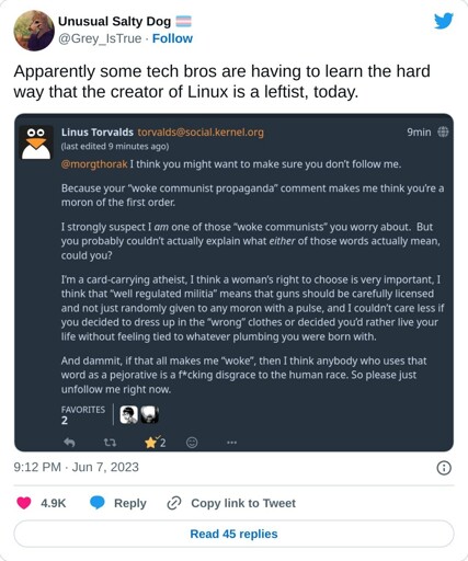 Just how fucking dense do you have to be in order to be surprised that a man who created one of the most popular operating systems on Earth, and then gave it away for free, might be a leftist?