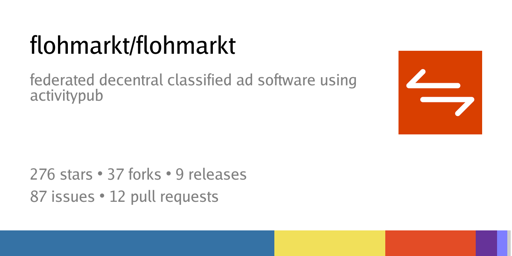 tofu@lemmy.nocturnal.garden to Self-hosting@slrpnk.netEnglish · 6 months agoflohmarkt a federated alternative to ebay and facebook marketplacecodeberg.orgexternal-linkmessage-square0linkfedilinkarrow-up11arrow-down10cross-posted to: [email protected][email protected][email protected]