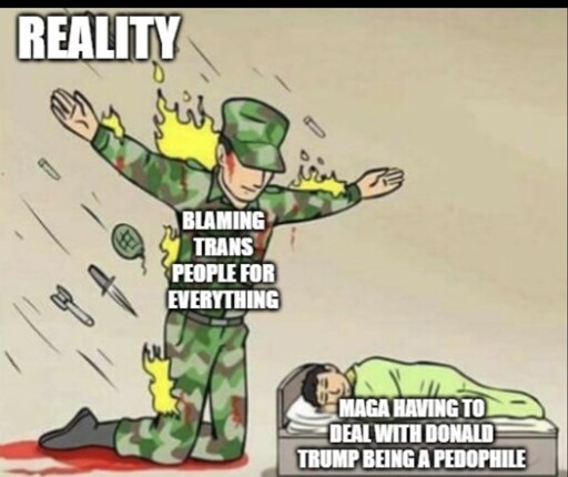minus-squareWalrusDragonOnABike [they/them]@reddthat.comlinkfedilinkarrow-up10·6 days agoTrump rapes people of all ages and MAGA react by accusing trans people of being abusers.