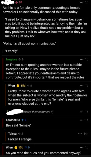 Literally nothing is stopping you from creating a community for men with a rule that only men participate. The difference is that in the community you’re thinking about though, women wouldn’t be constantly trying to mess with it. There are hundreds of communities to choose from. We’re not entitled to participate in them all.