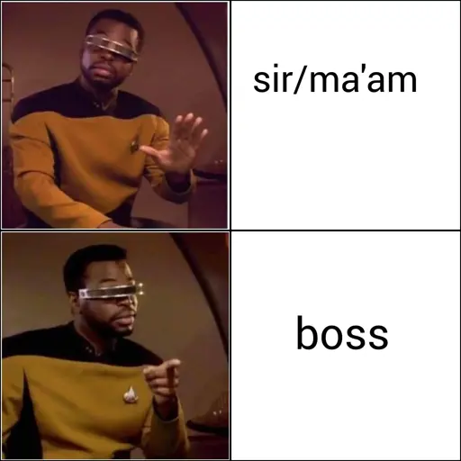 minus-squareReplicantBatty@lemmy.onelinkfedilinkarrow-up9·2 months agoI personally don’t like to be called boss, it implies a power dynamic I’m pretty uncomfortable with, whether intentional or not. That being said I’m not gonna start a fight over it or anything shrugs