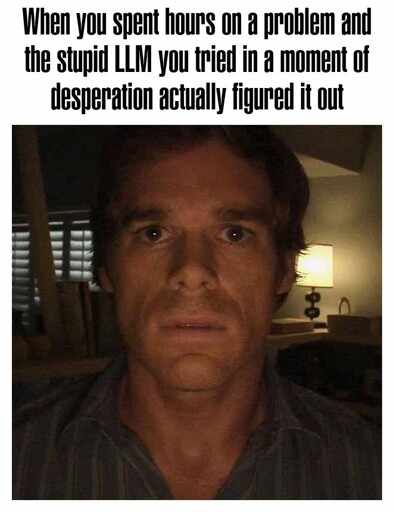 Me yesterday, except I only thought it figured it out, then found out hours later I must revert back to my workaround because it didn’t really work fully and was fragile as fuck.
