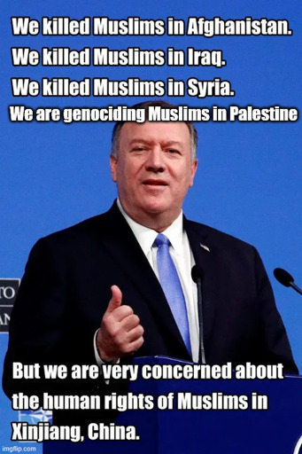 The US liberates muslims (from the mortal coil) while China enslaves muslims (by making them part of the productive forces).