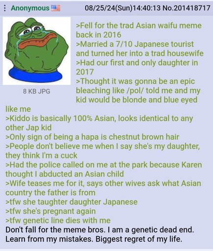 So even when an incel hits their personal jackpot and gets to bang a Japanese woman they’re still just miserable pricks lol