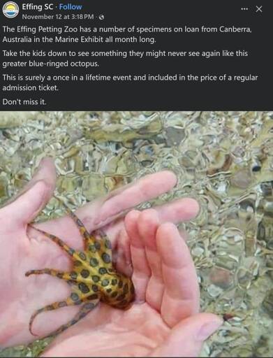 minus-squareb34k@lemmy.worldlinkfedilinkEnglisharrow-up0·1 year agoPetting a blue ring octopus could definitely be a once in a lifetime event!
