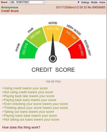 Note however that I am just a cynical IT guy in Sweden with zero actual exposure to US/UK style credit scores, and that I may be talking out of my ass.