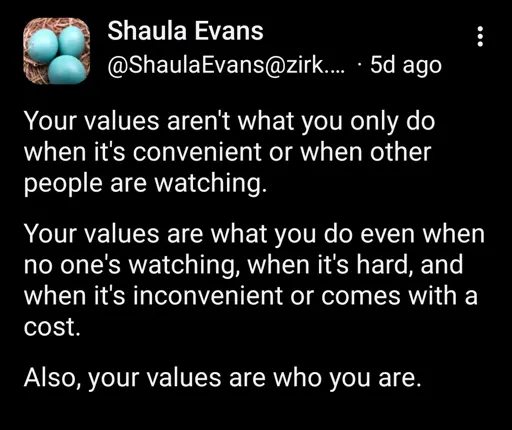 not everyone can afford to have their actions match their values aye