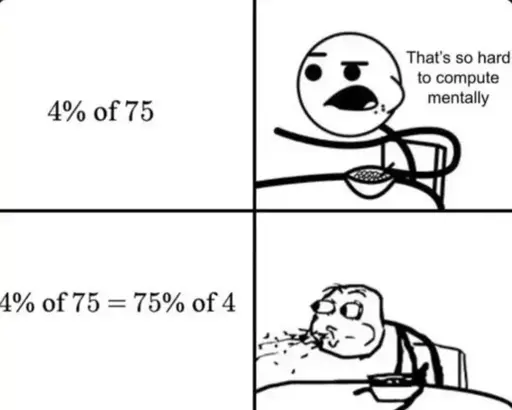 Meanwhile im the idiot thats like “uh 10% of 75 is 7.5, half it for 5% of 75 is 3.75, 1% of 75 is .75, so its probably 3?”