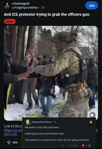 After an ICE Agent blatantly murdered a woman in Minneapolis yesterday, a flood of vague justifications for the murder such as this post started flowing into sub