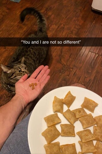 They put beef jerky in bags that are exactly the same bags that they put dog and cat treats in. Whenever I go to the store and I’m waiting in line and the bags of beef jerky are there, I usually pick one up and start shaking it to see if any men come running. Do you want a treat, you want a treat?
