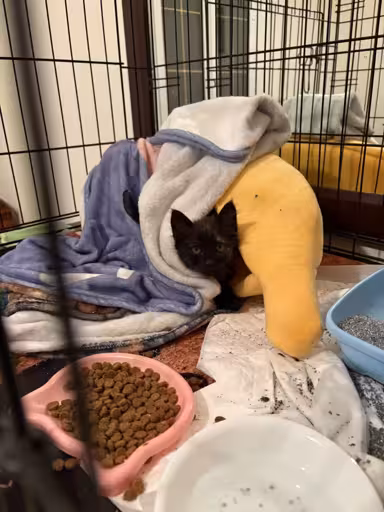 I LOVE THIS😭❤️ she’s got a vet visit on the 25th but so far she’s a playful happy purring girl and eating well. She’s a little menace though I have no idea how she gets the cage so messy.