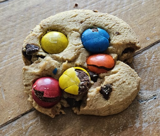 if the cookie is what I think it should be, the smarties are supposed to be chopped up. Not whole. OP has far more smarties than you’d expect in a cookie