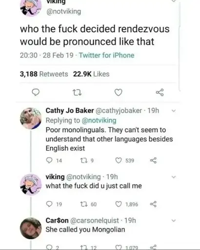 I hate it honestly. The french spent centuries ruling England and messing up our language just for the rest of the world to make fun of us for it as if it’s our fault.