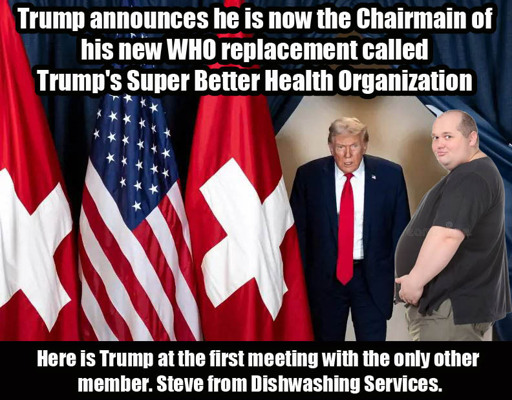 IndridCold@lemmy.ca to Political Memes@lemmy.ca · 4 days agoTrump's Super Better Health Organization coming soon.lemmy.caimagemessage-square4linkfedilinkarrow-up170arrow-down10