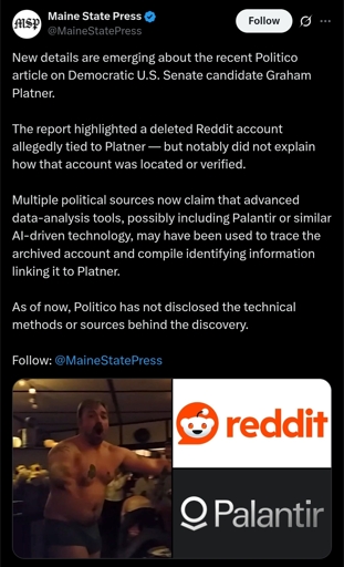 destructdisc@lemmy.world to A Boring Dystopia@lemmy.world · 10 days agoApparently Palantir can access the content of social media accounts that were deleted a decade ago.lemmy.worldimagemessage-square137linkfedilinkarrow-up1700arrow-down19file-text