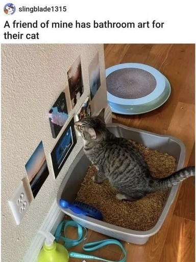 I’m surprised that stuff stays on the wall - my cats would have ripped half of it down already while trying to bury their business.