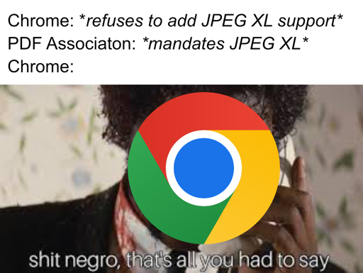 arrow-up11arrow-down1imageGoogle Chrome must be coerced into adopting standardslemmy.worldTheTwelveYearOld@lemmy.world to Dank Memes@lemmy.worldEnglish · 3 months agomessage-square0linkfedilinkcross-posted to: [email protected][email protected]