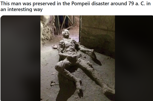 Disclaimer: he was most likely not actually masturbating in his final moments. A more probable explanation is that the hot pyroclastic flow from Mt. Vesuvius forcefully contracted his muscles, leaving him in that state.