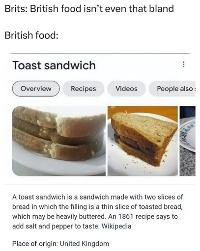 minus-squareFmstrat@lemmy.worldlinkfedilinkarrow-up1·9 days agoHaha if you go back, Meal Deals are addictive. They look like cheap gas station sandwiches, but they’re quality ingredients with good fresh bread. Combos we don’t get here like cheese and onion are just a very different thing than you would expect.