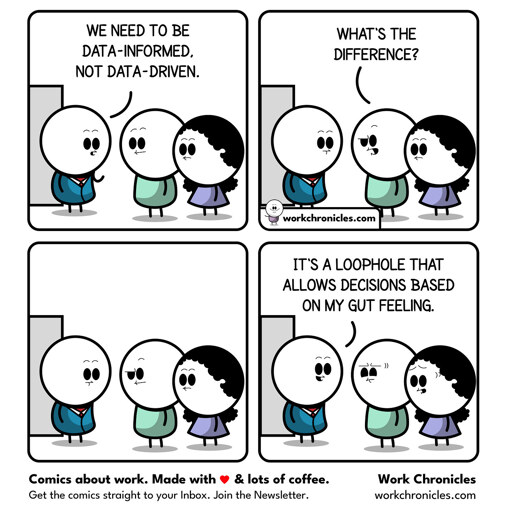 To be fair, actual data-driven decisions require sufficient data. Depending on the field, collecting all relevant data may be quite expensive. And then it can be the right call to not do that, to only collect data where it’s cheap and to accept the risk of a gut feeling being wrong for the rest.