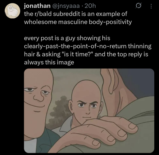 This! I’d much prefer to have a full head of hair, but since that’s not an option, I prefer to be bald rather than visibly balding 🤷