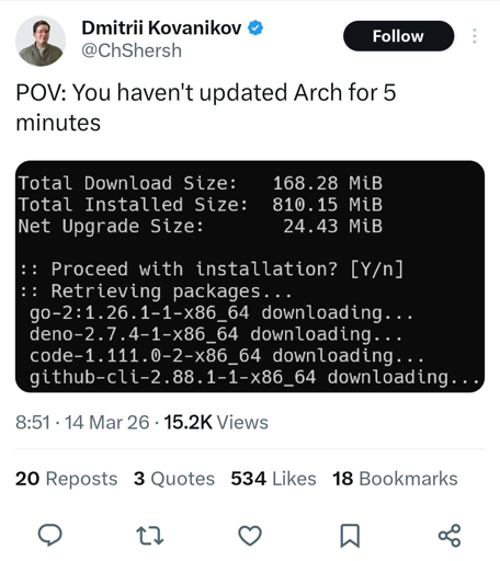POV: You haven’t updated Arch for 5 minutes