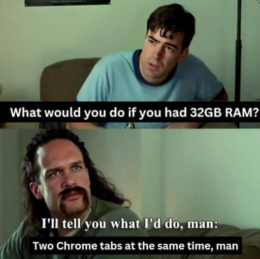 xpostml10@lemmings.world to memes@lemmy.world · 8 months agoWhat would you do if you had 32GB RAM?lemmy.mlimagemessage-square0linkfedilinkarrow-up11arrow-down10